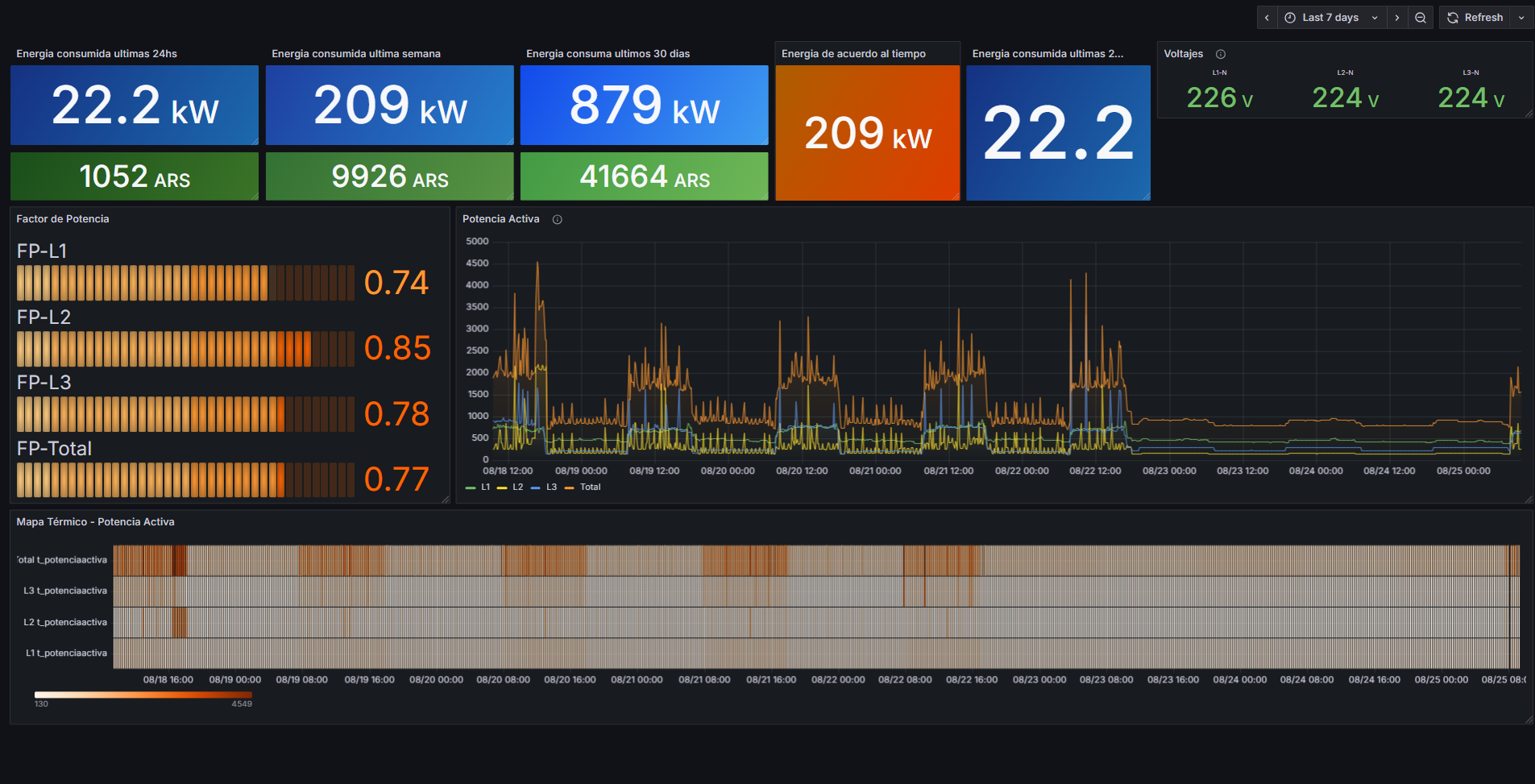Seguimiento en tiempo real del consumo energético para fábricas, con reportes históricos y alertas de consumo excesivo.